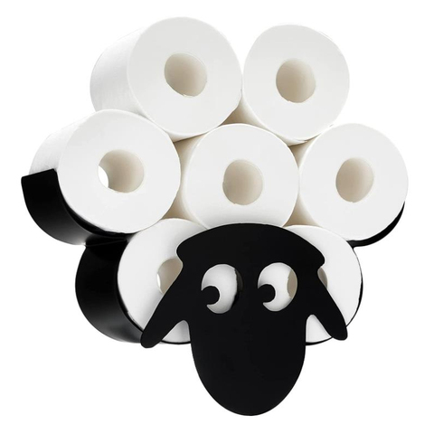 ที่ใส่กระดาษชำระลายแกะ,ตะกร้ากระดาษชำระติดผนังโลหะสีดำแบบตลกสามารถใส่กระดาษชำระแบบยืนได้ฟรี
