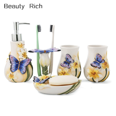 เซรามิคชุดอุปกรณ์ห้องน้ำผีเสื้อเต้นรำเซรามิค 5 ชิ้นชุดรวมถึงผู้ถือแปรงสีฟัน,2 น้ำยาบ้วนปาก-แปรงถ้วย