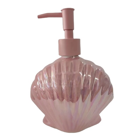 ขวดอิมัลชันเปลือกเซรามิก เครื่องจ่ายสบู่กดเซรามิก ขวดเจลทําความสะอาดมือทรงเปลือกเคลือบมุก